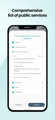 * The app organizes a wide range of services into categories relevant to newcomers, such as housing, employment, health care, education, legal aid, and more.