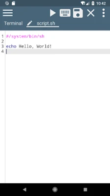 A summary of terminals features - Has basic unix commands like grep and find preinstalled(Missing on older phones). - Write and run shell scripts on your phone. - Exposes its private storage where you can freely set the execute permission on executables.