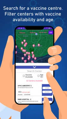 Vaccine Setu mobile application helps users discover the nearest vaccine centers in their district and provide navigation to those centers instantaneously. The application will help you list the vaccine centers around you based on age and vaccine availability and help navigate you to the desired vaccine center.